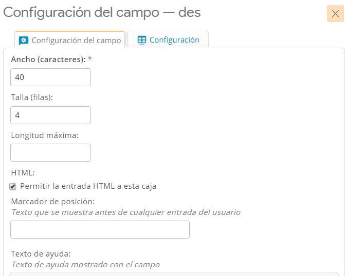 Pero no solo no se ve el recuadro completo del campo sino que no admite el contenido html: