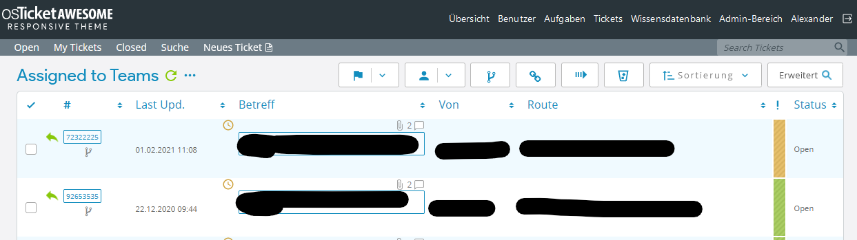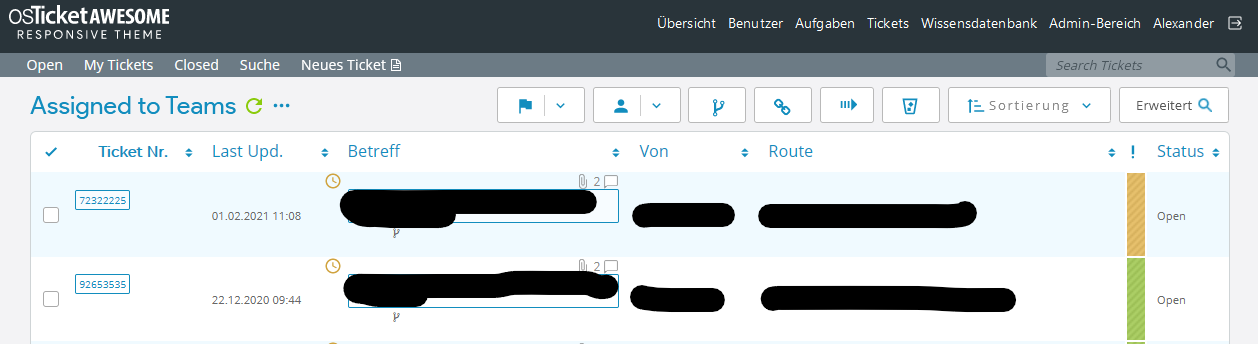 So this is only when I open a page via the menue.And the ticket list is also a bit broken on the version of the page where the display error occures.